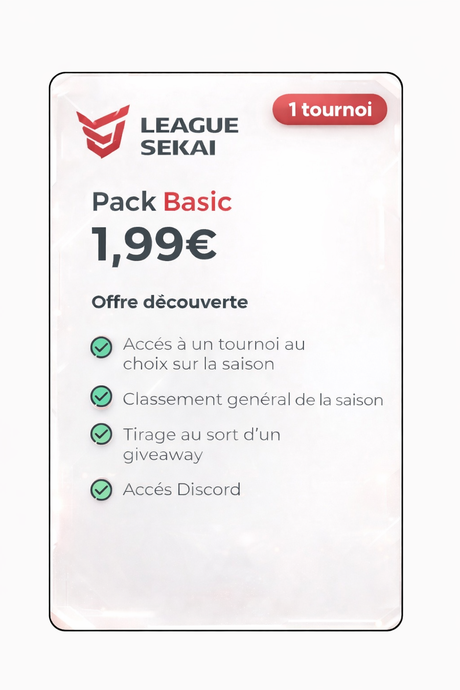 - Basic : accès à 1 tournoi